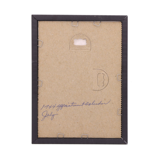 WWII U.S. Framed Page from Artist's Sketch Pad Calendar with Pin-Up Girl Artwork by Earl Macpherson (July 1944)