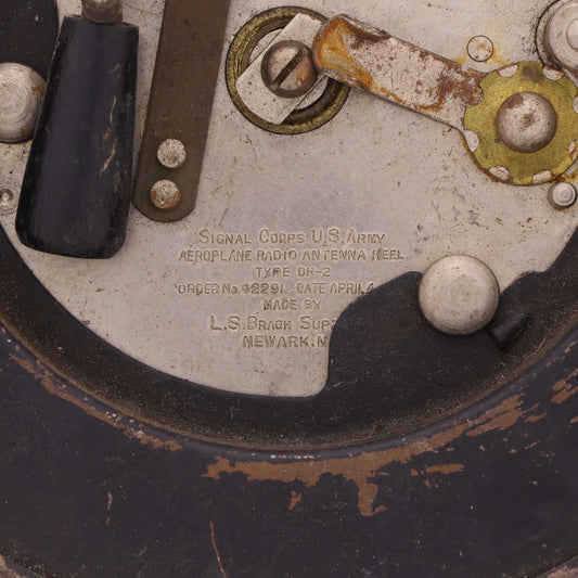 WWI U.S. Army Signal Corps Type DR-2 Aeroplane Radio Antenna Reel with Instructions by L.S. Brach Mfg. Co. (1918)