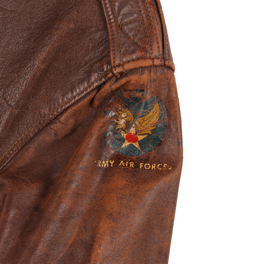 WWII USAAF Type A-2 Leather Flight Jacket by Bronco Mfg. Corp. Identified to the 385th Bombardment Group (Size 42)