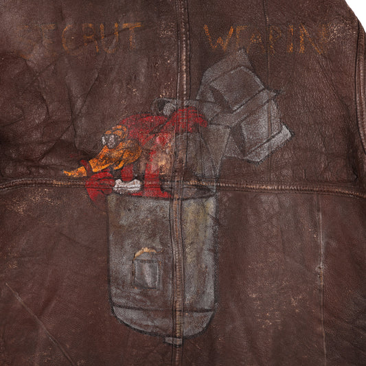 WWII USAAF Type D-1 Ground Crew Sheepskin Jacket by Werber Sportswear Co. with Hand Painted Secrut Weapin Nose Art (Size Medium)