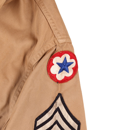 WWII U.S. Army ADSEC T/Sgt.'s Khaki Cotton Service Shirt by Thomson Company Size 14 1/2 x 32 (1944)