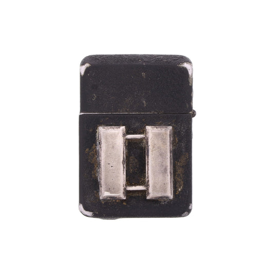 WWII U.S. Matawan "Wind-Master" Lighter with Black Crackle Finish & Sterling Silver Capt.'s Rank Pin Identified to Capt. Marcella V. Brandyberry