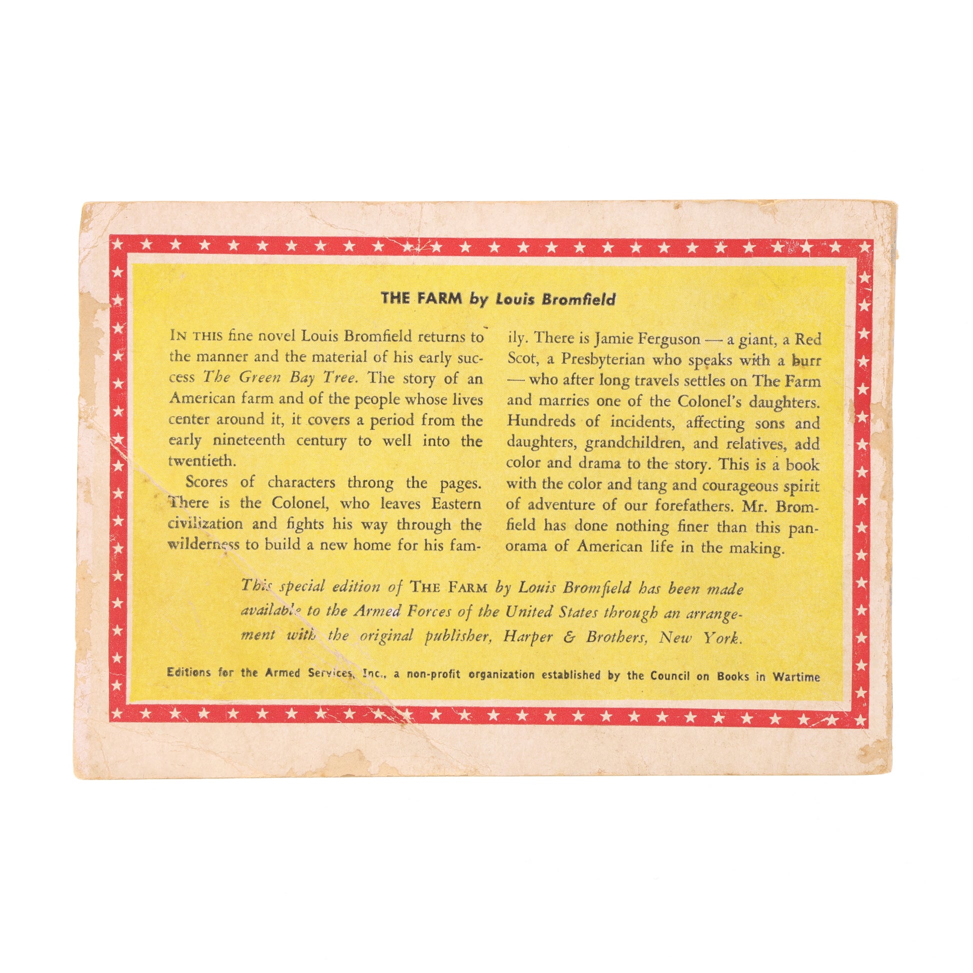Published by Editions for the Armed Services, Inc., a non-profit organization established by the Council on Books in Wartime, this book was distributed during WWII to soldiers and sailors alike by the Special Services Division, A.S.F. and by the Bureau of Naval Personnel, respectively. These make for excellent additions to footlocker displays.