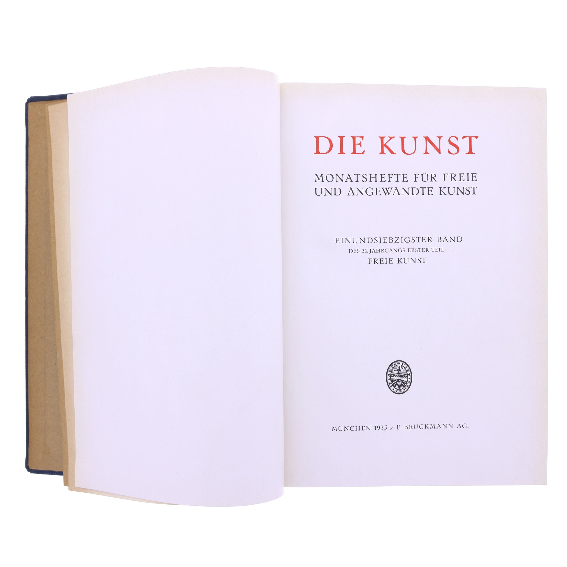 Die Kunst: Monat Shefte für Freie und Angewandte Kunst, or The Art: Monthly Magazines for Fine and Applied Arts was a long-standing, illustrated publication of German art, architecture, and interior design. This bound set, Volume 71-72, contains all issues from the year 1935, two years after Adolf Hitler became chancellor. It offers unrivaled access into Germany's steady eschewing of Entartete Kunst, or degenerate art.