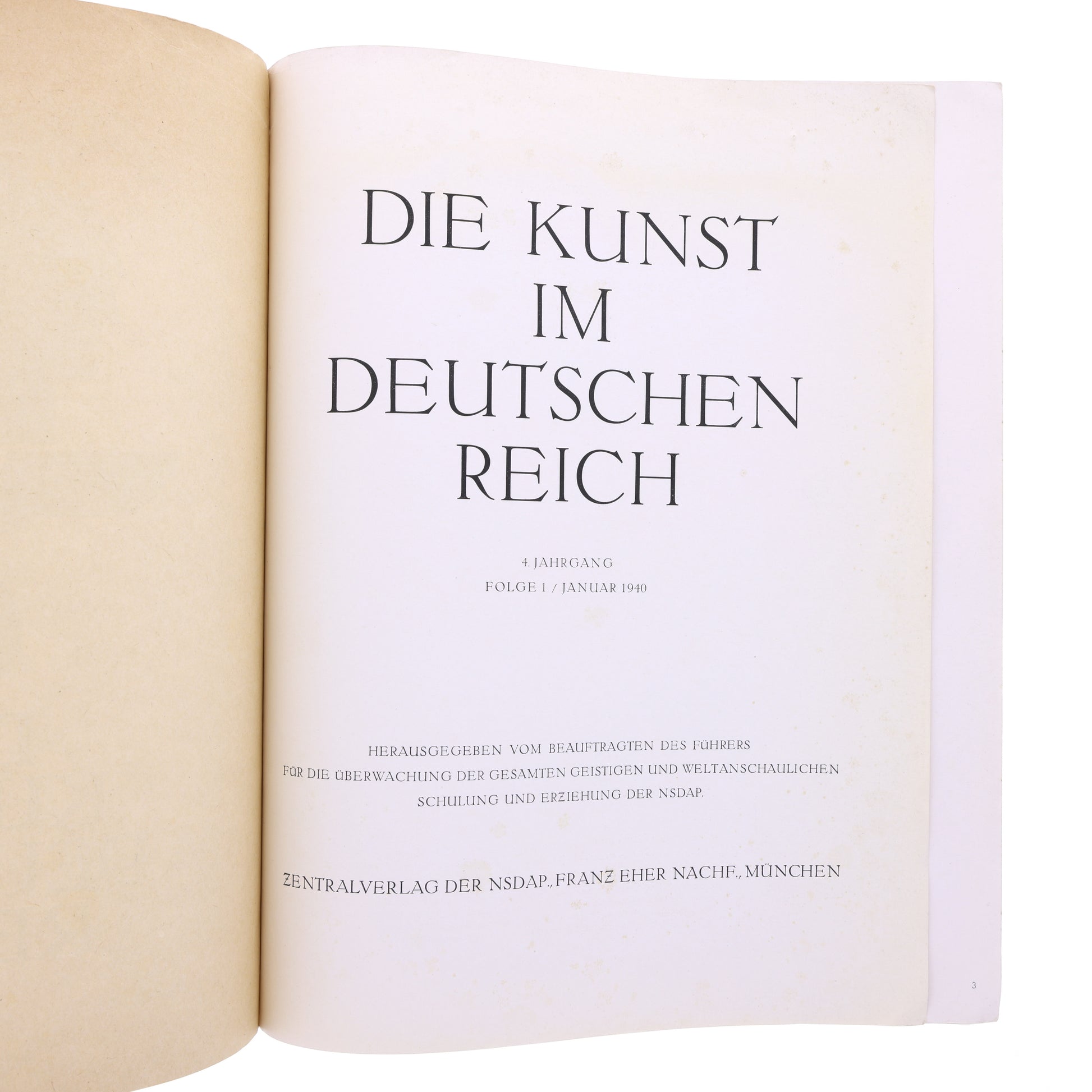 First published in January 1937 by Gauleiter Adolf Wagner, the monthly periodical Die Kunst Im Deutschen Reich offers a deeper understanding of German art and history during the Third Reich. With colorful images on nearly every page, you'll gain unparalleled insight into this complex era of artistic expression. This particular issue dates to January 1940.