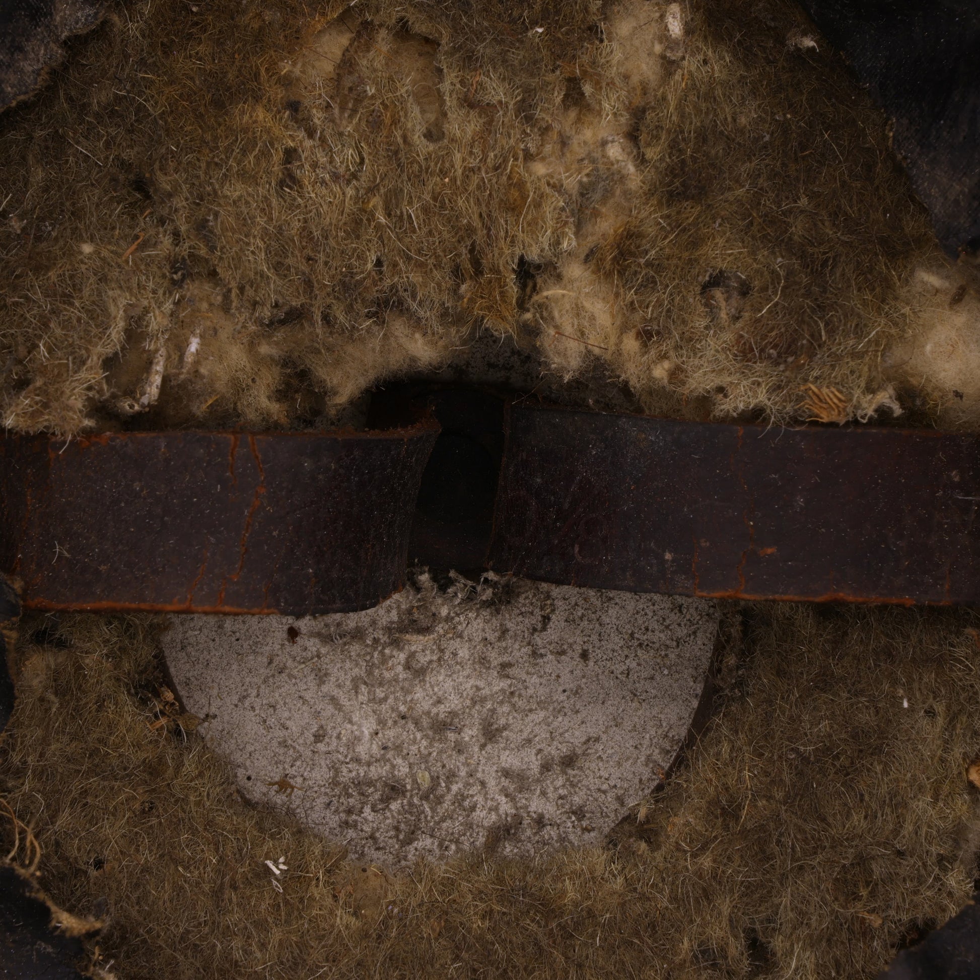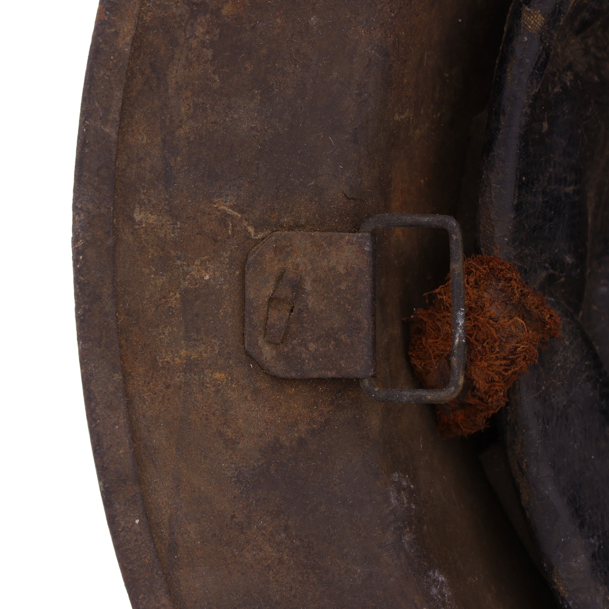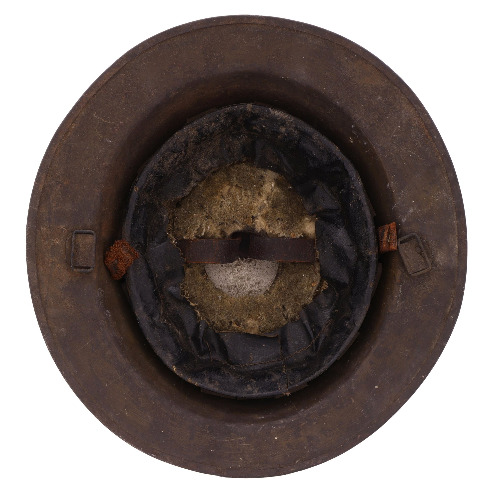For being well over 100 years old, this helmet is in fair condition. The interior's leather components show signs of damage and deterioration.