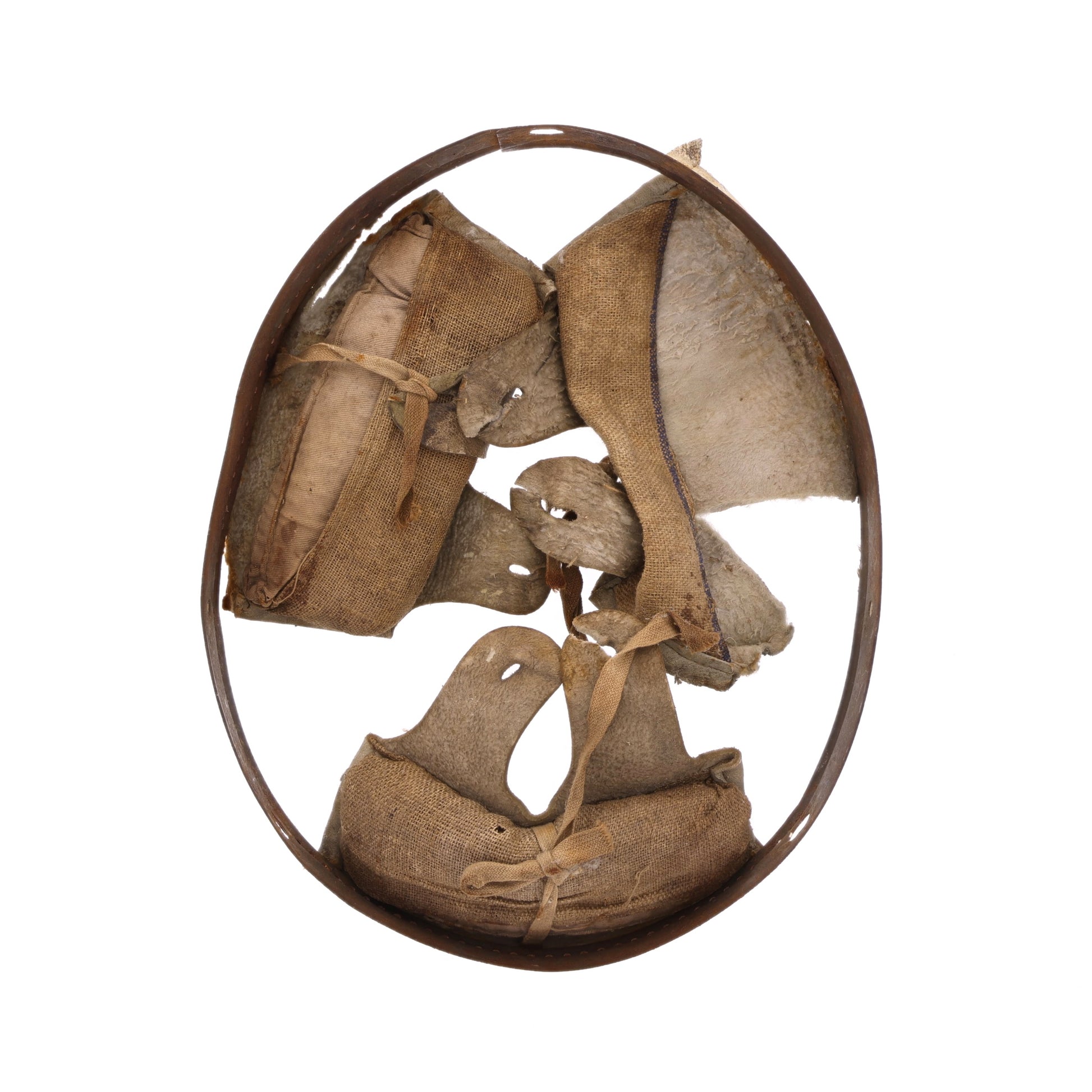 This is an original WWI Imperial German Army M17 helmet liner. It was recovered from a size 66 helmet shell manufactured by Eisenhüttenwerke, Thale. M17 helmet shells are identical to their M16 predecessors. The distinction was created among collectors, and it relates to the type of liner seen inside - helmets with leather liner bands are referred to as the M16 and those with steel bands, the M17. As such, this liner is an ideal candidate for the vast majority of stahlhelms. A close inspection of your helmet shell may indicate which liner it once had, as the M17's steel liner band may have left rust residue on its interior circumference.