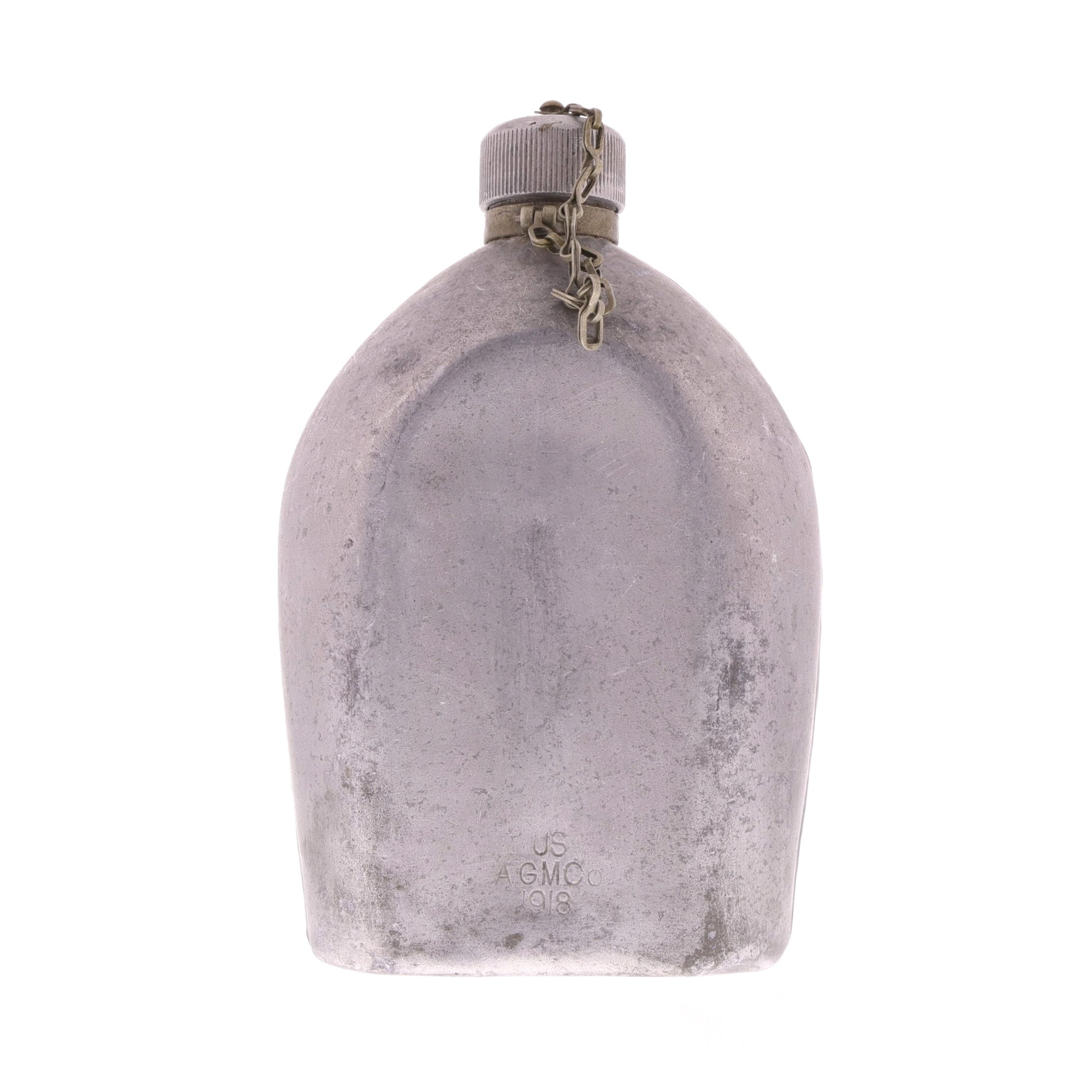 This is an original WWI U.S. M1910 canteen with cover. The canteen was manufactured in 1918 by Aluminum Goods Manufacturing Company of Manitowoc, Wisconsin. The canvas cover's manufacturer's and date marking have unfortunately faded beyond legibility, however it exhibits a side seam, first introduced in 1941 and standardized the following year.