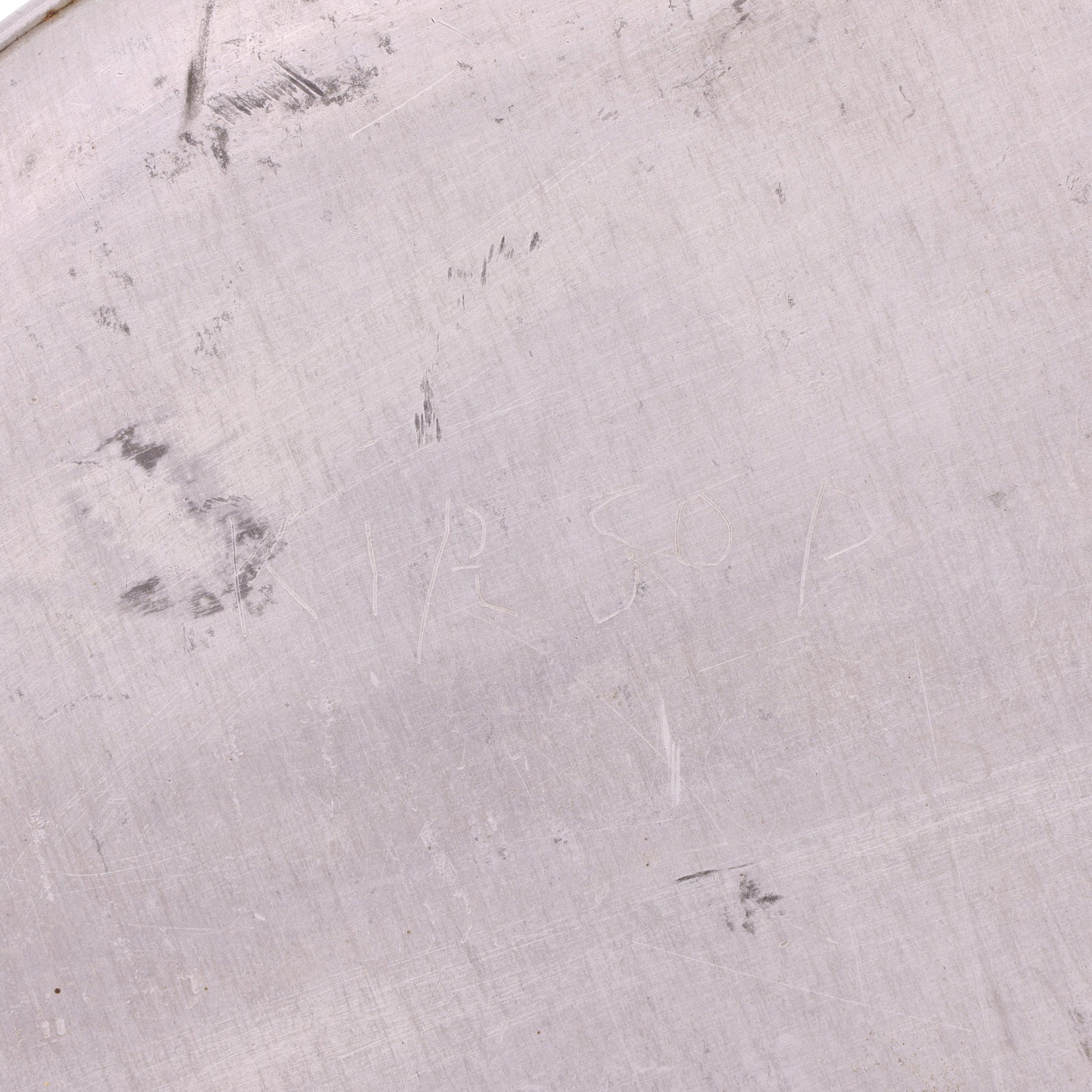 This original WWI U.S. M1918 aluminum mess kit was manufactured in 1918 by Edmunds & Jones Manufacturing Co. of Detroit, Michigan. Interestingly, etched into both the lid and the bottom is the original owner's name, "Kirsop". A search of the National Archives unfortunately reveals too many results to be conclusive.