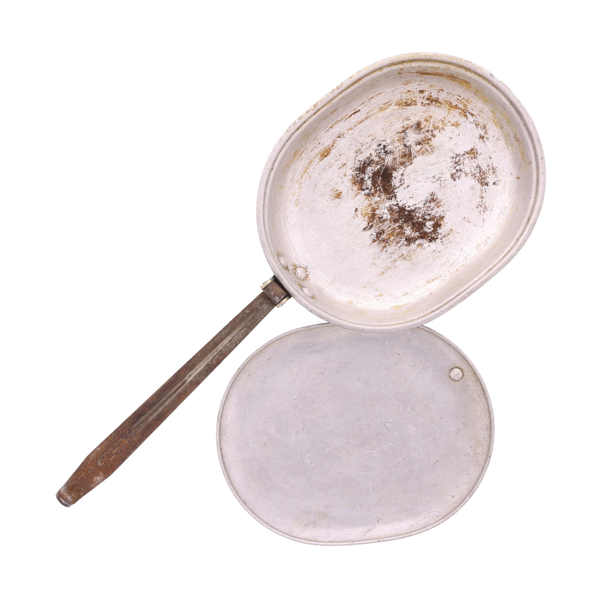 This mess kit is in good, used condition for being well over 100 years old. Unfortunately, however, its D-ring has since snapped off.