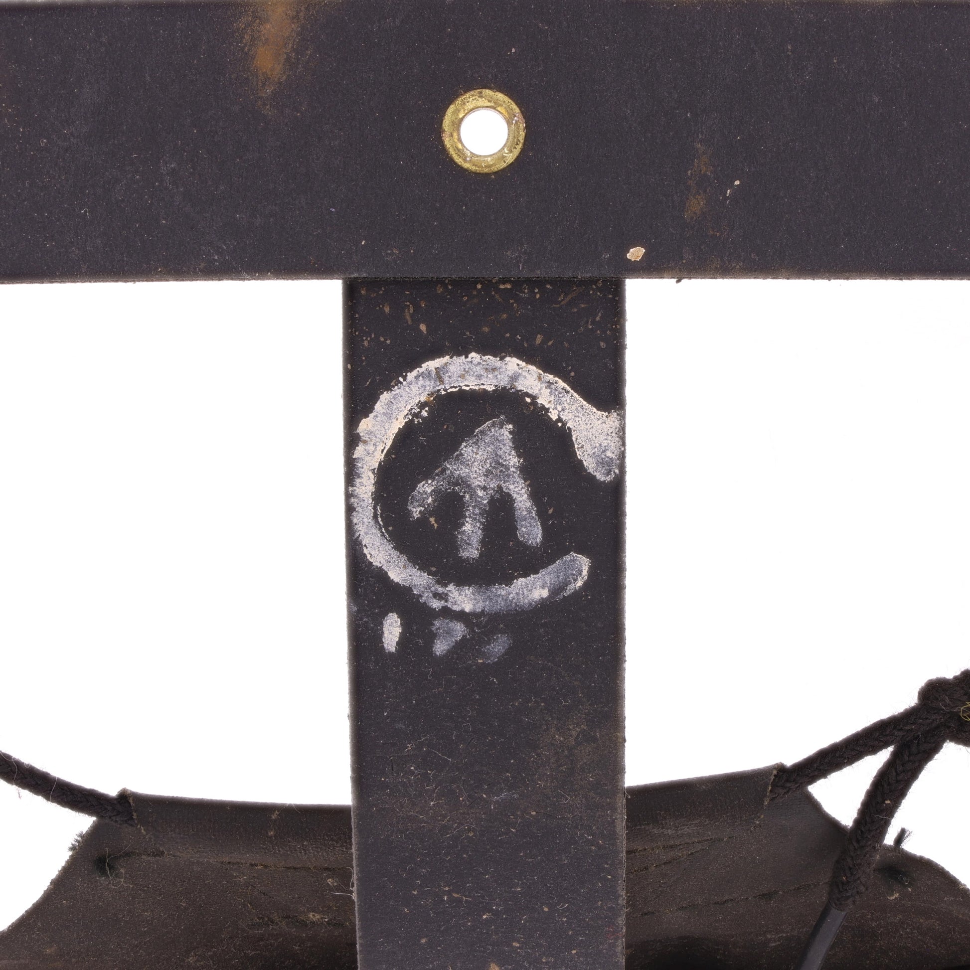 This is an original WWII Canadian MK II helmet liner. It is a size 7 3/4 and showcases a "1945" production stamp by Viceroy Manufacturing Company of Toronto, Ontario. In addition to its manufacturer's and size markings, the liner's underside features the "broad arrow" marking, with "17_" inscribed beneath it. It comes complete with its original crown pad.