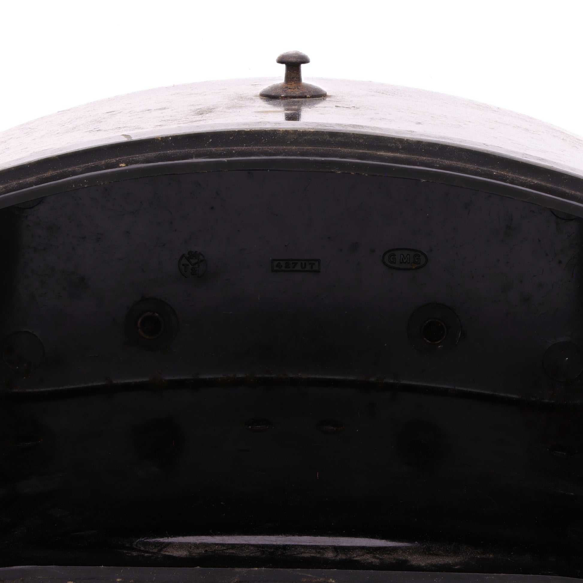 This is an original WWII German dienstglas bakelite case for the 6x30 binoculars. Its interior is marked "24" over "T2", which denotes Type 2 materials (synthetic resin with asbestos and other organic fillers) produced by Gebrüder Merten of Gummersbach, Germany ("GMG"). The interior is also marked "427UT". This case comes complete with its original leather carrying strap, which appears to be a repurposed strap that would normally be affixed directly to the dienstglas.