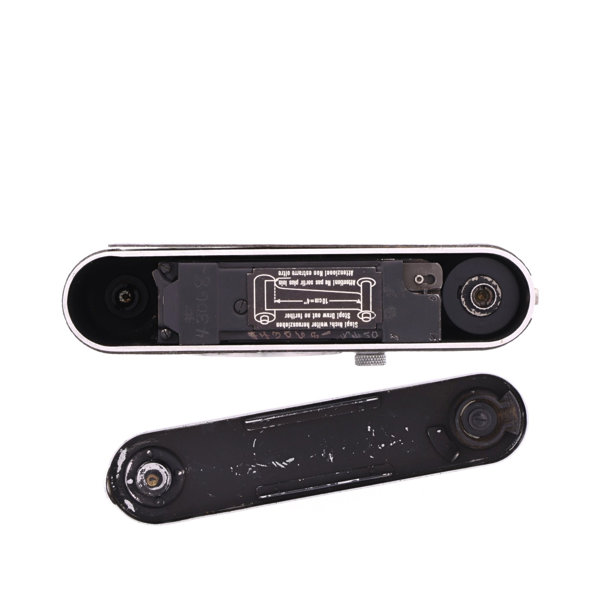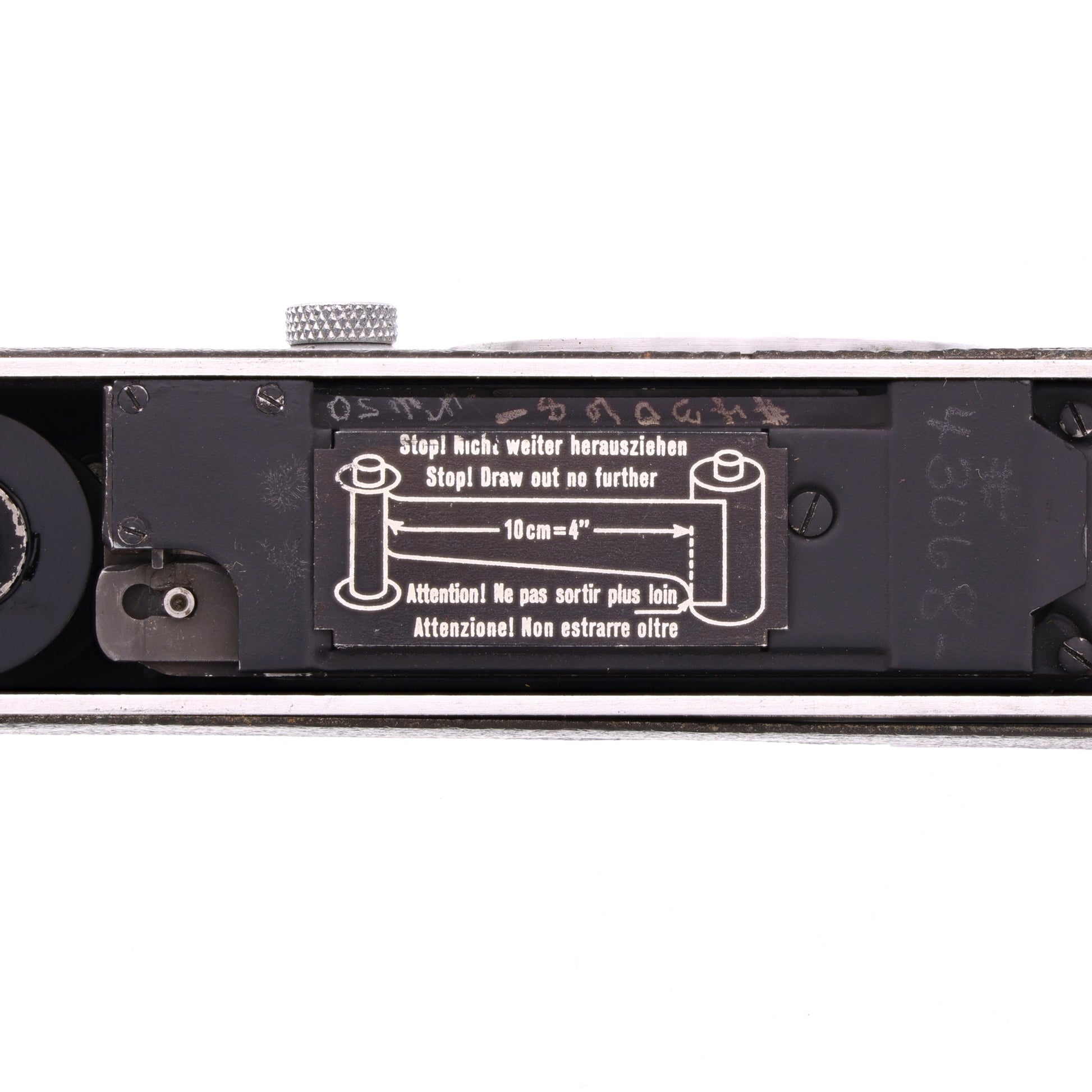 This camera is in very good, functional condition; however, it could likely benefit from a complete servicing. Unlike many examples, it is still in its wartime configuration with no post-war modifications. It retains its original, albeit cracking, vulcanite (imitation leather) covering and all of its internal components are present.