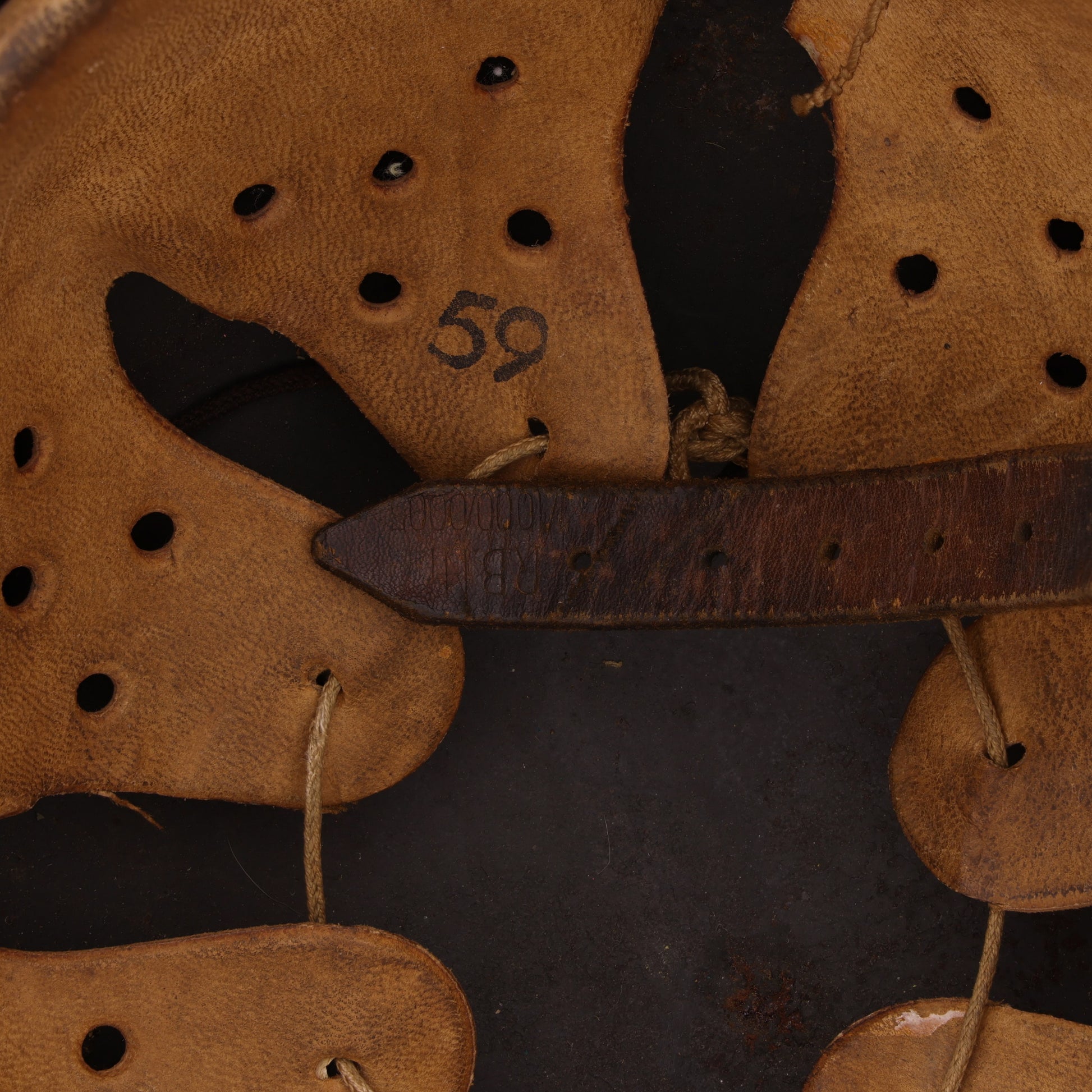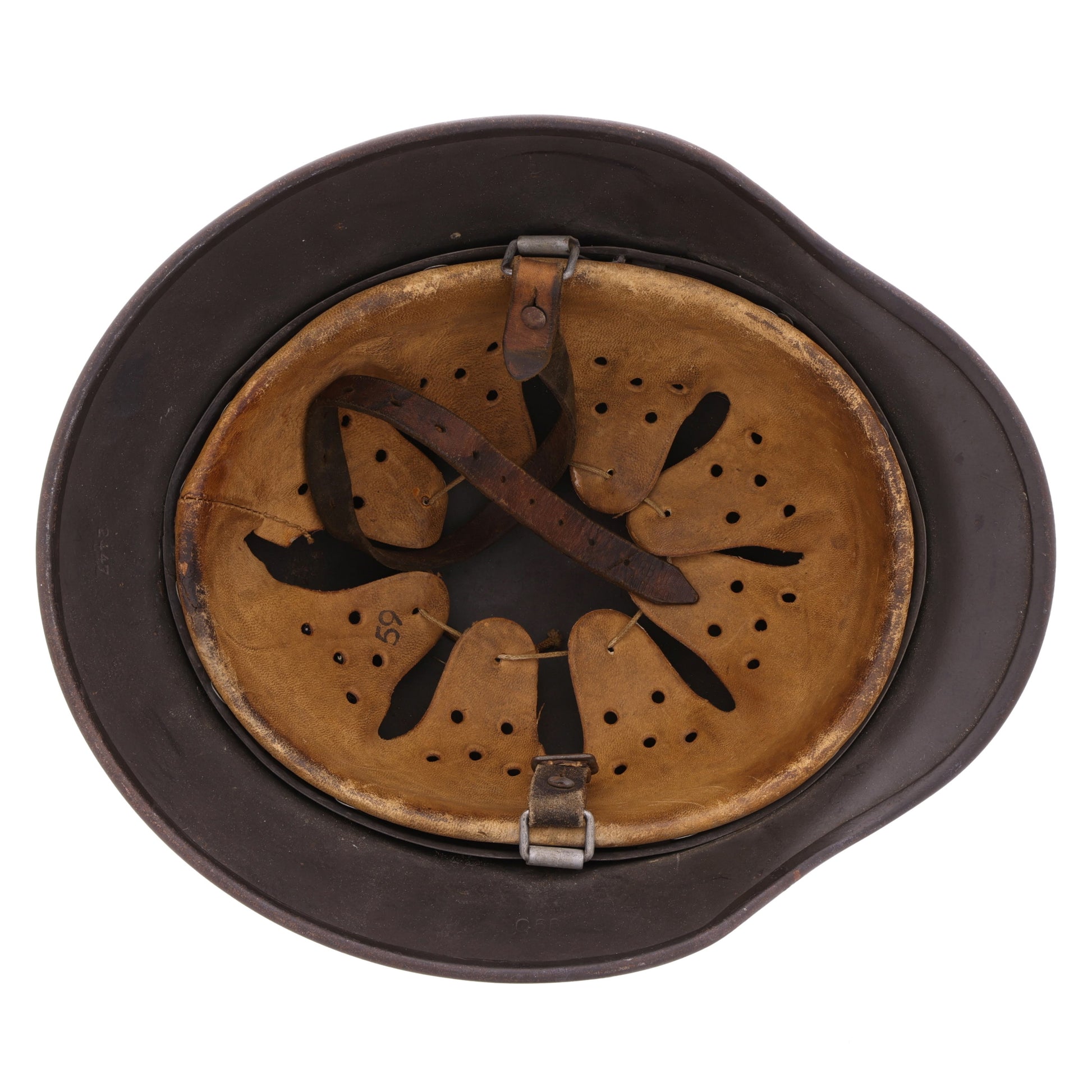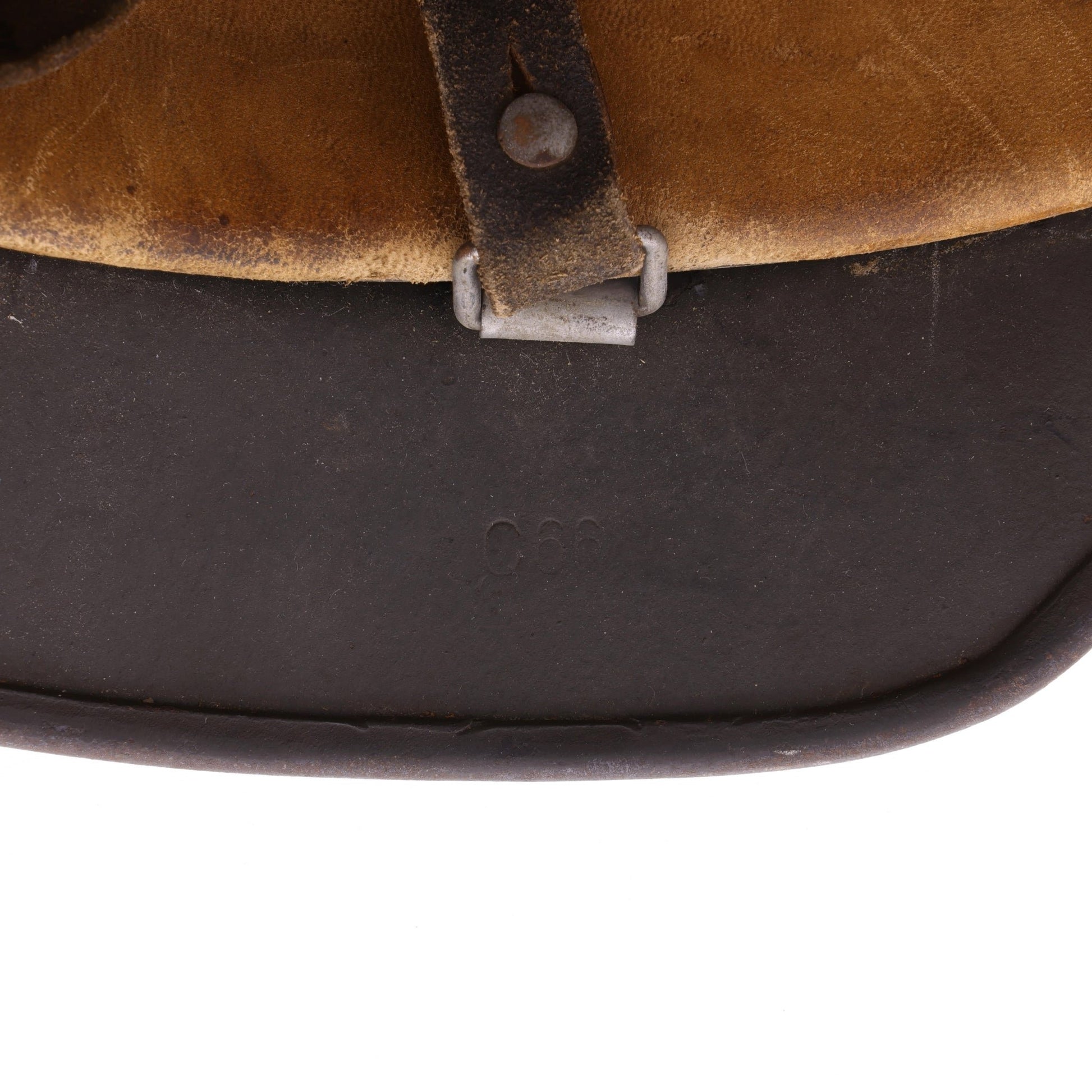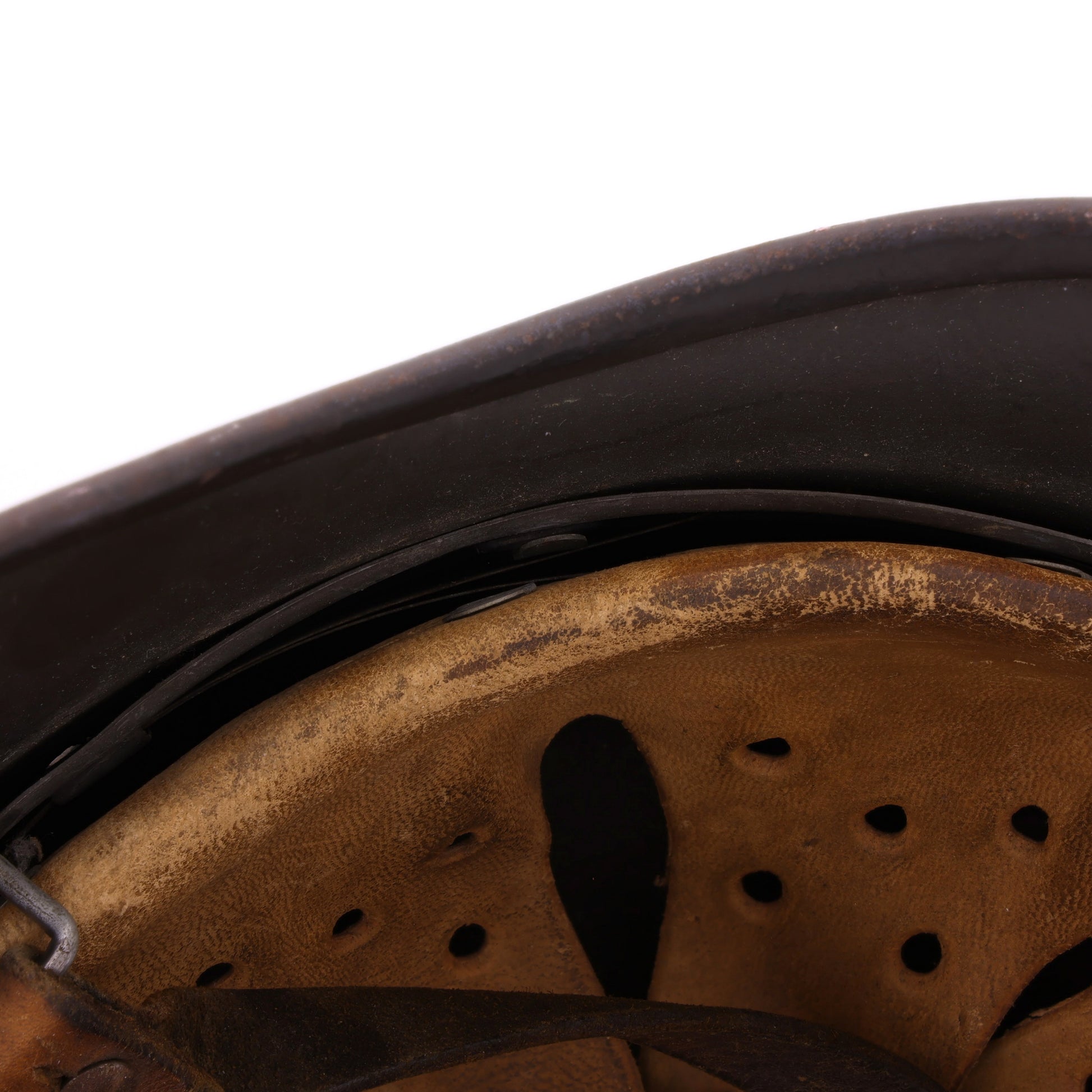 This helmet is in very good condition. Unfortunately, however, the Heer decal has almost completely worn away. It does not appear to have been intentionally removed, though, and its absence is likely the result of a poor lacquer application at the factory.