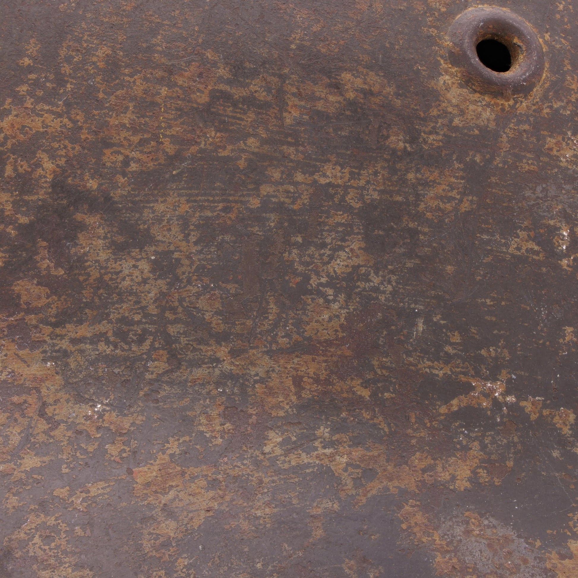 This is an original WWII German M40 single decal Heer helmet. The inside brim is size stamped "ET64", along with the lot number of "932", denoting production by the Eisenhüttenwerke, Thale factory. Adhered to the rear skirt is some tape residue, likely applied by the American veteran who brought the helmet home as a souvenir. Atop its original feldgrau factory finish are remnants of an original whitewash winter camouflage. The interior retains its original leather liner and chinstrap. The chinstrap exhibits a steel buckle and is marked "Heinrich Sohn K.G., Neu-Ulm 1942". The helmet's split pins and washers are all original and show no signs of tampering.