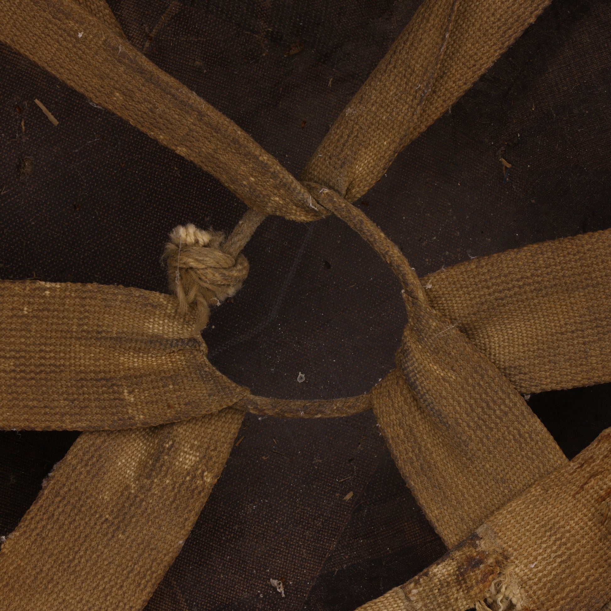 This original WWII U.S. M-1 helmet liner drawstring was recovered from a Westinghouse Electric & Manufacturing Company example with a rayon suspension (not included but shown in the second image). It is constructed of white cotton material and would be ideal for early-WWII U.S. M-1 helmet liners with rayon suspensions.