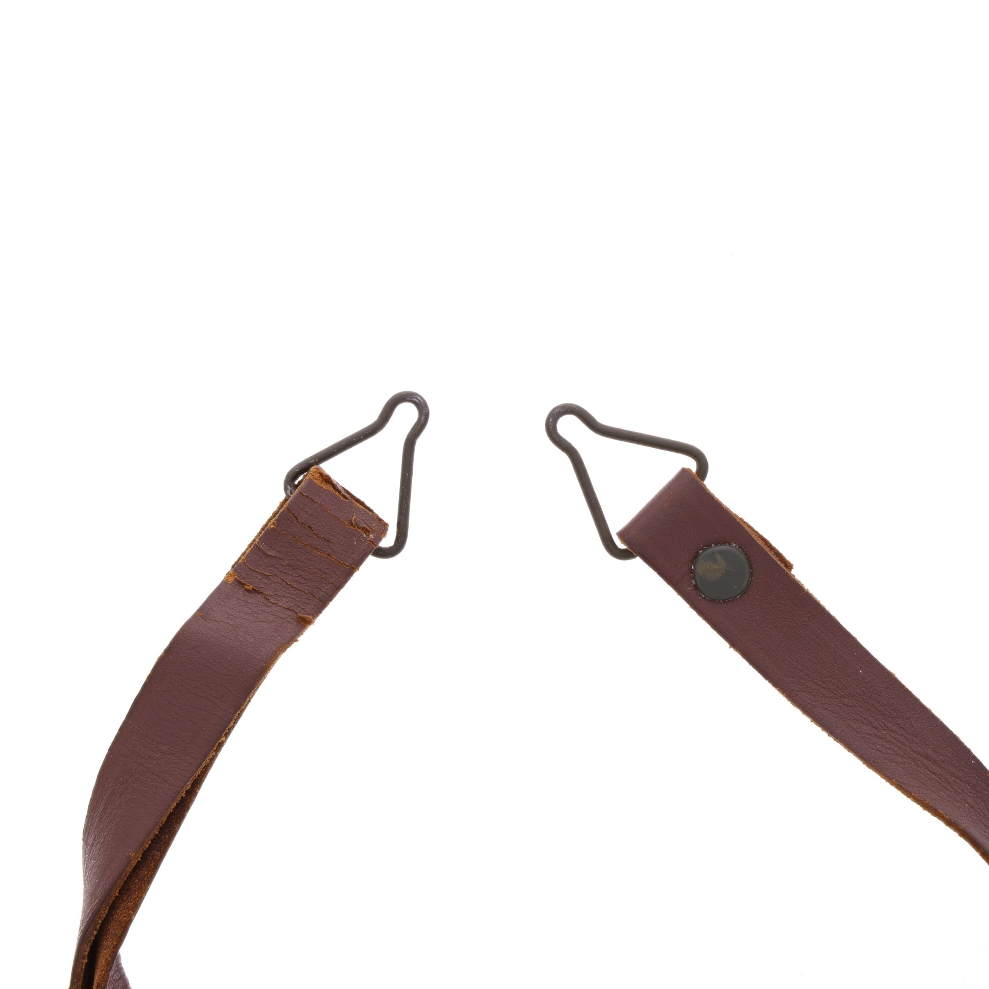This chinstrap is in good, used condition. The leather remains generally pliable; however, there is surface cracking throughout.