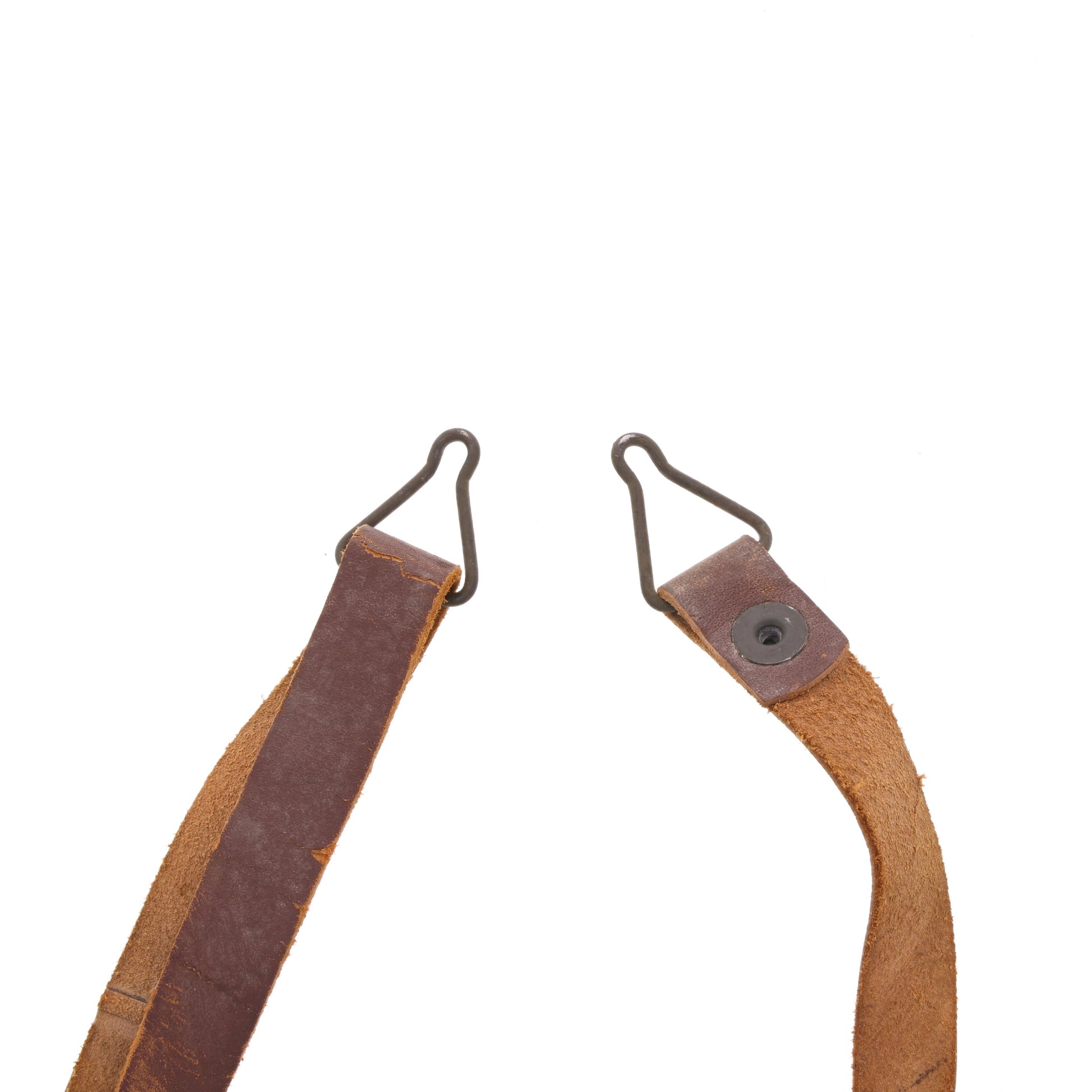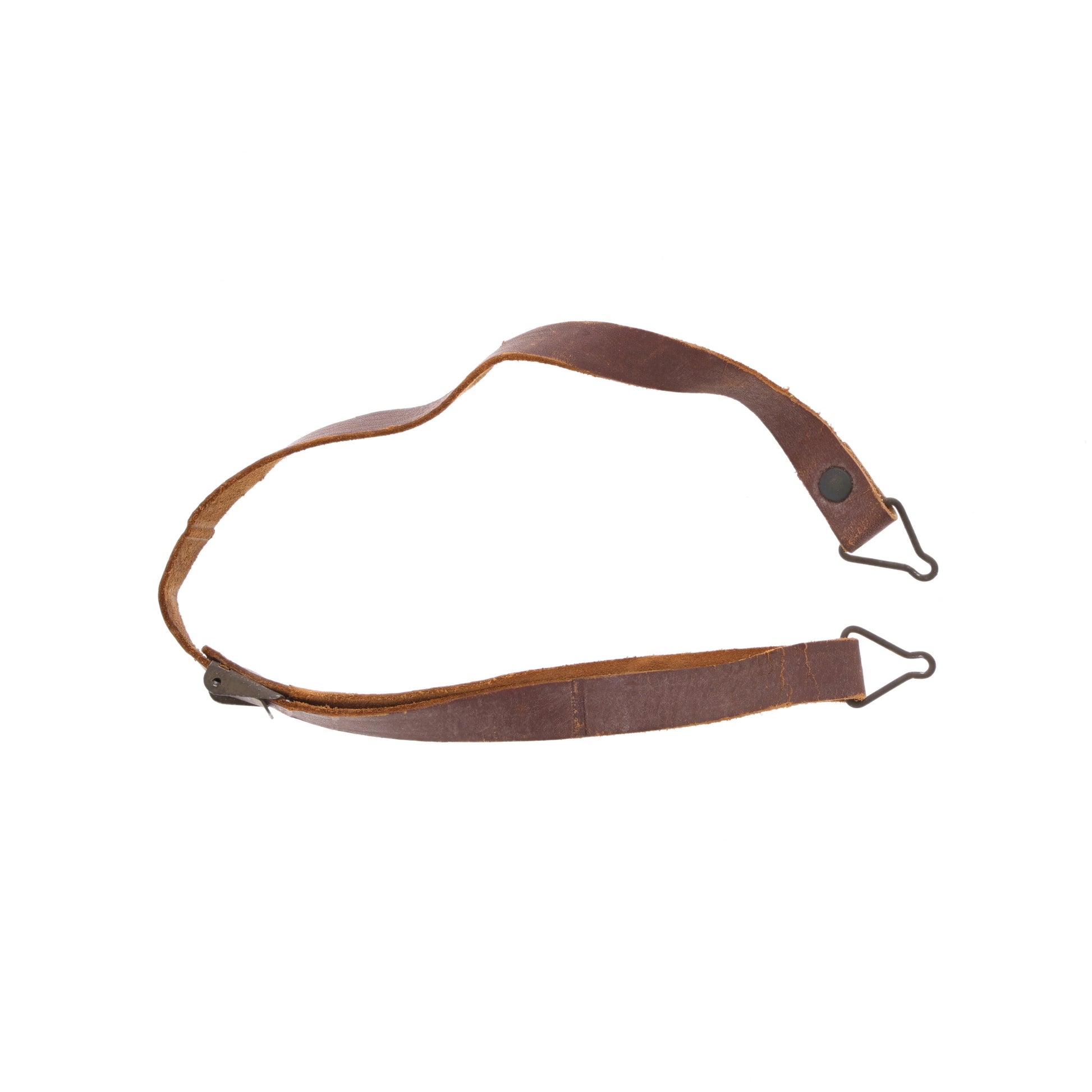 This chinstrap is in good, used condition. The leather's surface exhibits some surface cracking but remains soft and pliable.