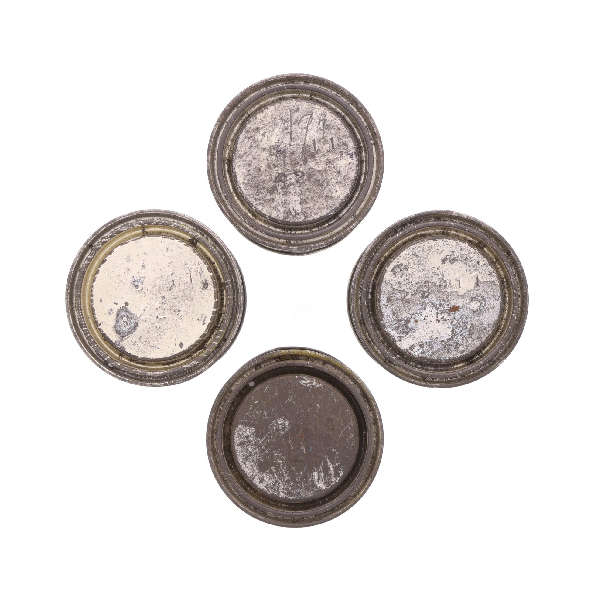 Given the nature of oil-based paints, we're afraid these are only available to ship to U.S. addresses via USPS Ground Advantage. This listing is for a single original unopened can of WWII U.S. M-5 Type II liquid vesicant gas detecting paint, however four are available. This paint was commonly used by U.S. invasion forces as a method of camouflaging their helmets, jeeps, and other equipment. When the normally brownish green paint would come into contact with chemical weapons it would turn pinkish red, warning the troops of the presence of gas. All four are dated September 11, 1942.