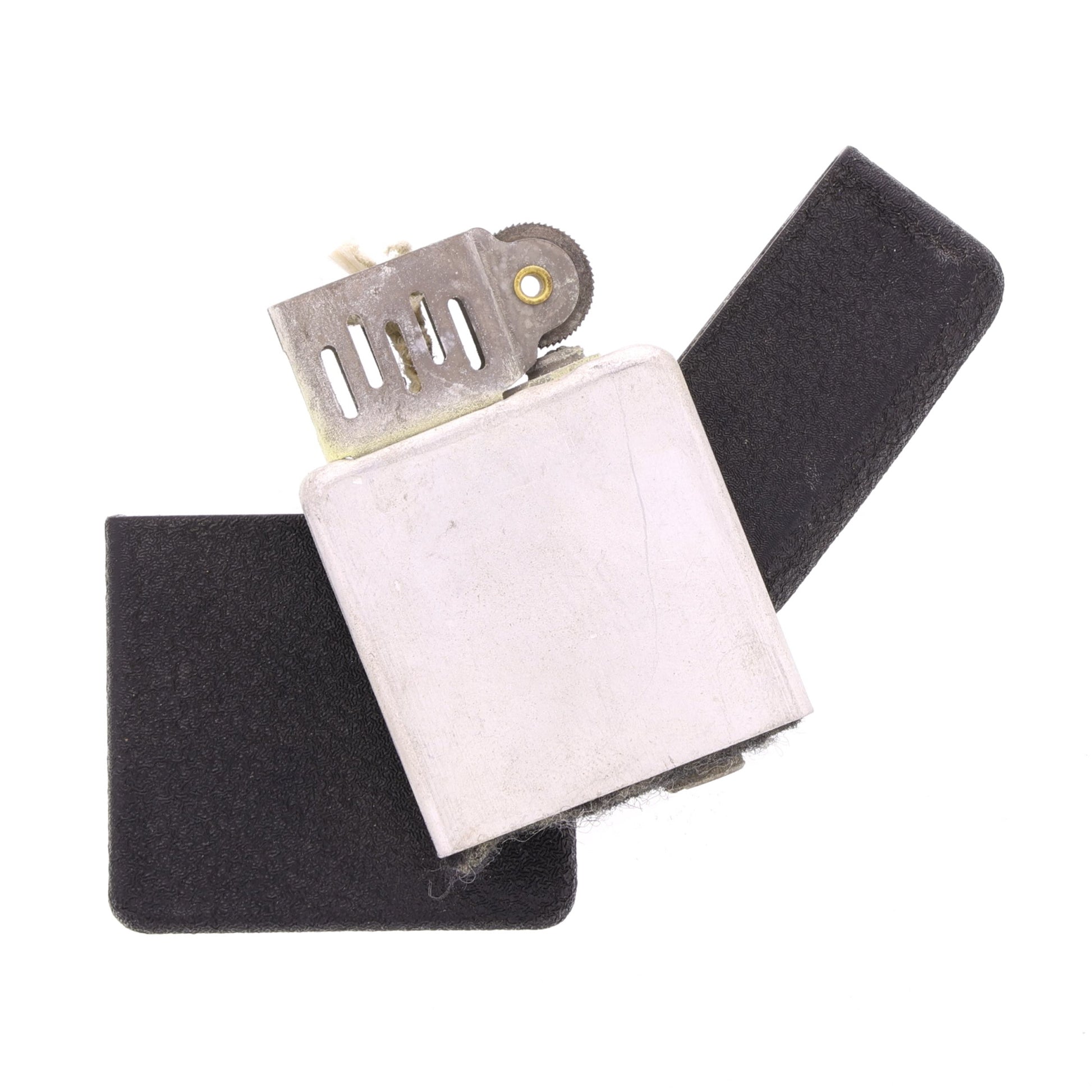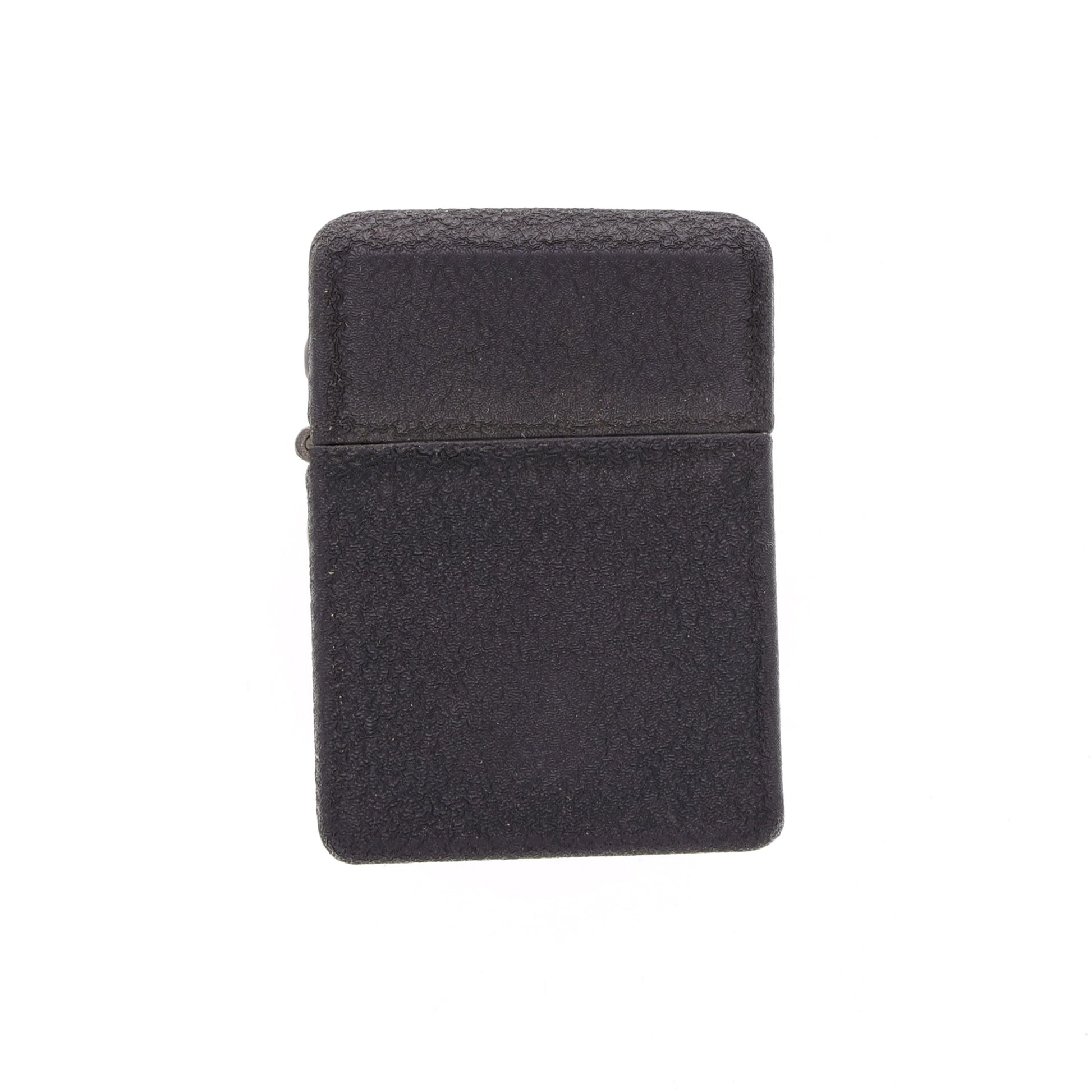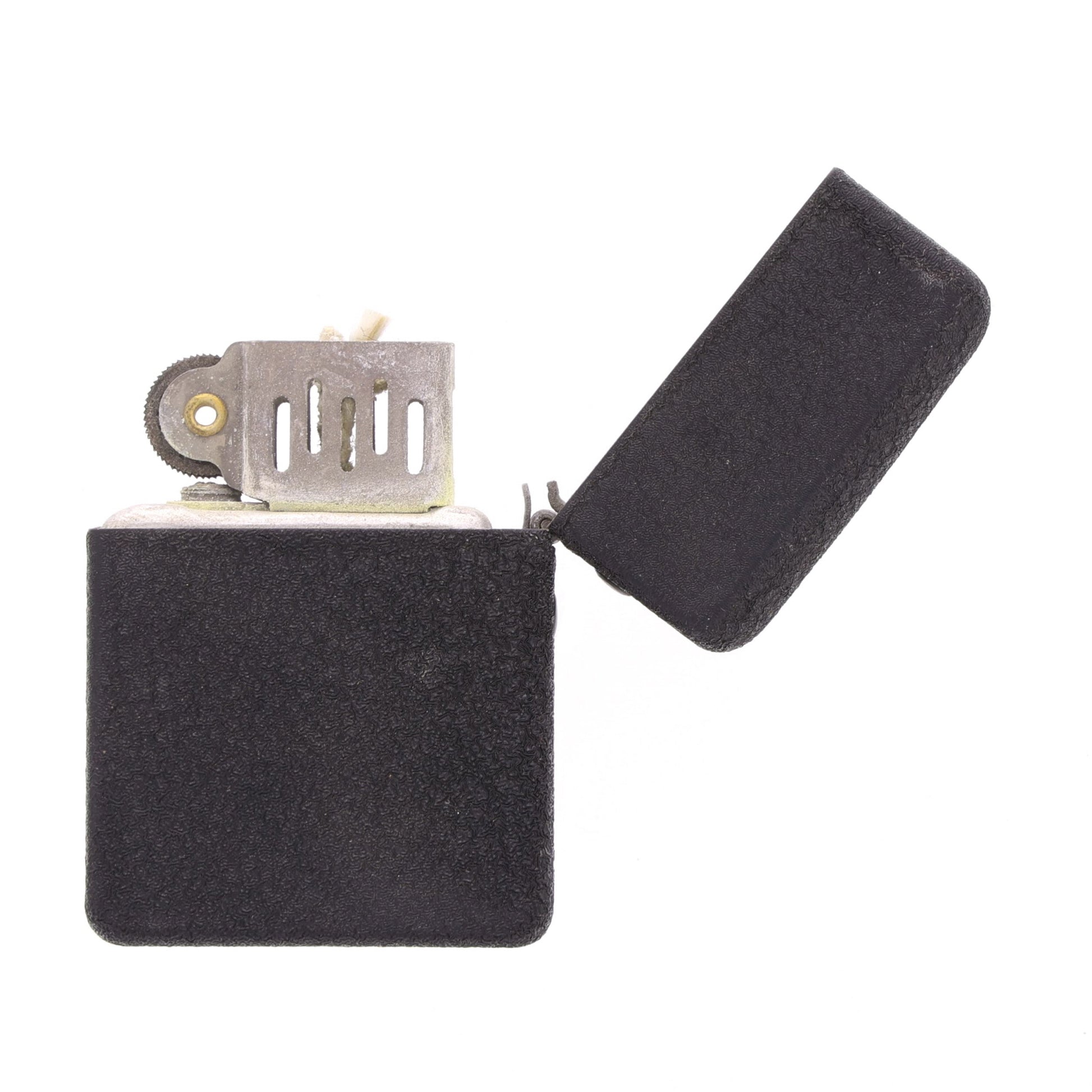 This lighter is in excellent, unfired condition, with all of its original black painted crackle textured finish intact. It comes complete with its original cardstock box, which still retains all of its flaps. This lighter will require a flint and fluid to function.