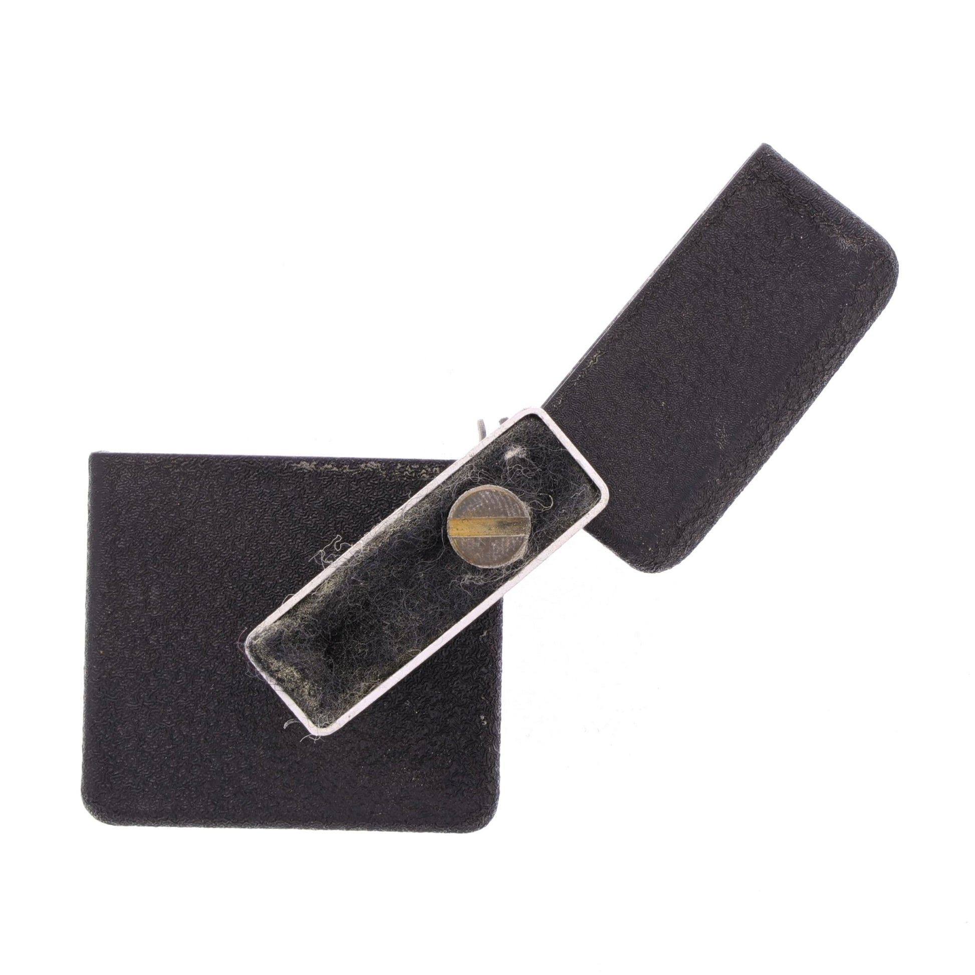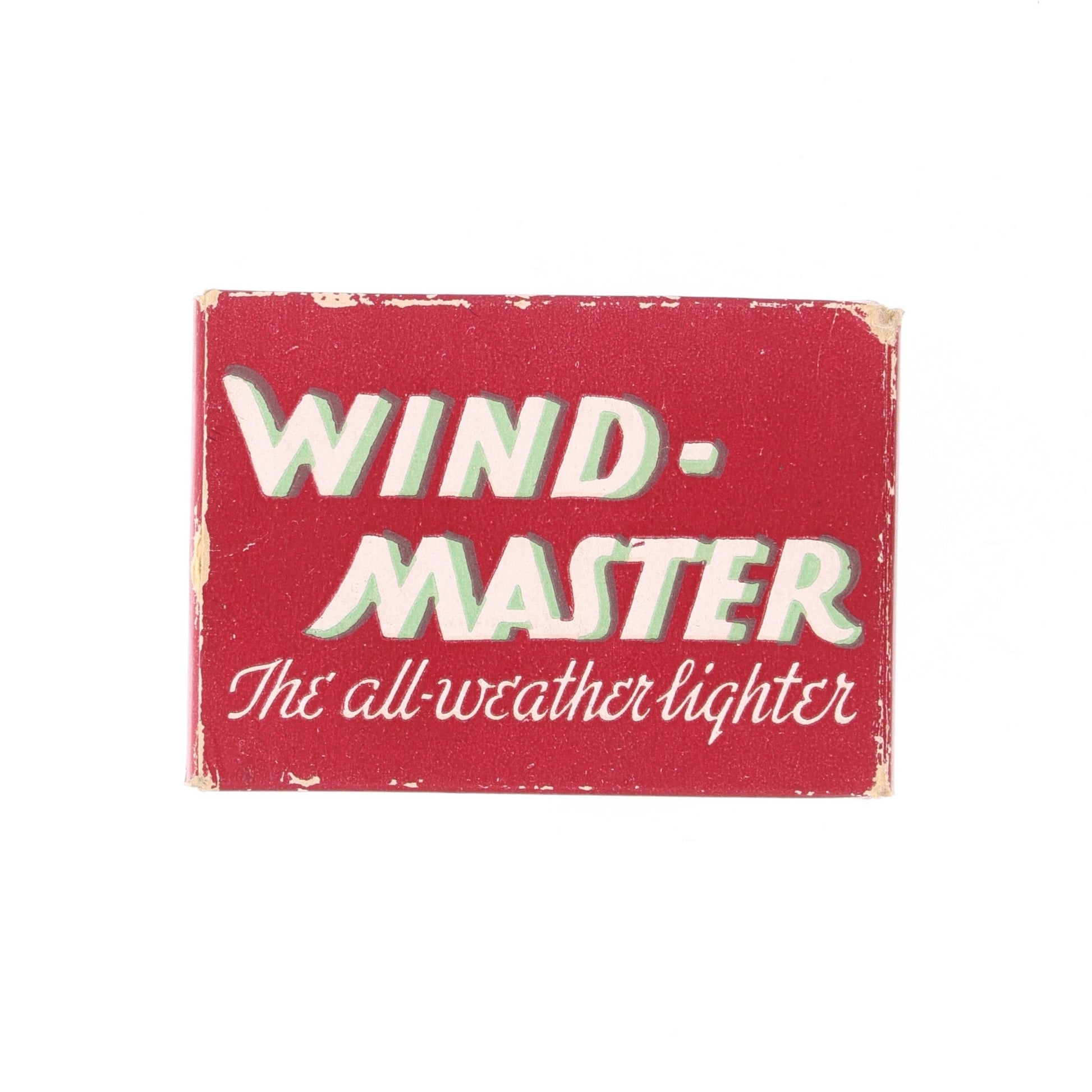 This original WWII U.S. "Wind-Master" lighter was produced by Matawan Lighter Company, Inc. of Matawan, New Jersey. Due to wartime scarcity, Matawan, along with others like Zippo and Berkeley, produced lighters with black crackle finishes (as opposed to pre-war nickel and polished brass).